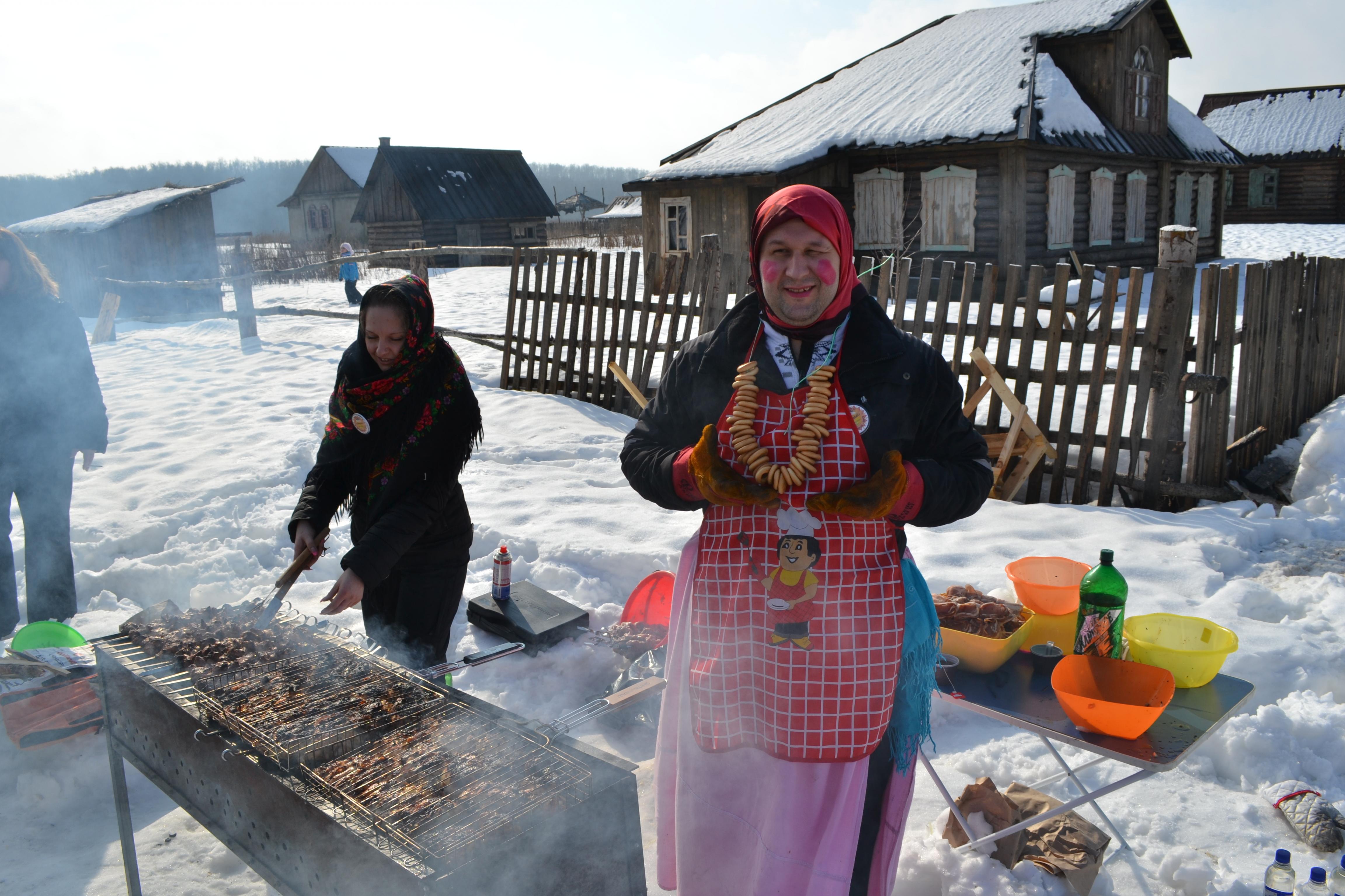 Уже утром пришло осознание, какую работу проделали все и КАКОЕ огромное желание у ВСЕХ было провести встречу! Наши замечательные повара, перелопатив в ночь на субботу столько мяса, потом весь день его жарили и мало того успевали нас развлекать. Наш Замечательные Медведи приготовили просто шикарную курицу, а так же изображали коробейника, меняли колесо у УАЗА, фотографировали. Наша Инна (Искра) просто чудо - сразу по приезду была взята в плен кухней и все блинные страдания - были ее подвигом, помимо того, что дома она напекла столько всего вкусненького , на сделала замечательную заготовку для конкурса по выпечке блинов. Инна, я очень надеюсь, что вы с мужем приедете еще не на одну встречу и сможете уже отдохнуть без кухни...Наола со своими замечательными сыновьями, привезла вкуснющие блины, начинки и море хорошего настроения. А Оксанчик... какие грибочки.... вау!!!Кстати... жаренные оказались у мну... я их честно стянула домой. Огромное спасибо нашим мужчинам, они обеспечили всех таким шикарным местом (Туалетом), прокопав в снегу широкую дорогу, все отгородив... Кстати так классно получилось и Баннер очень помог.А фотографы... столько фотографий, столько видео...Всем еще раз спасибо!