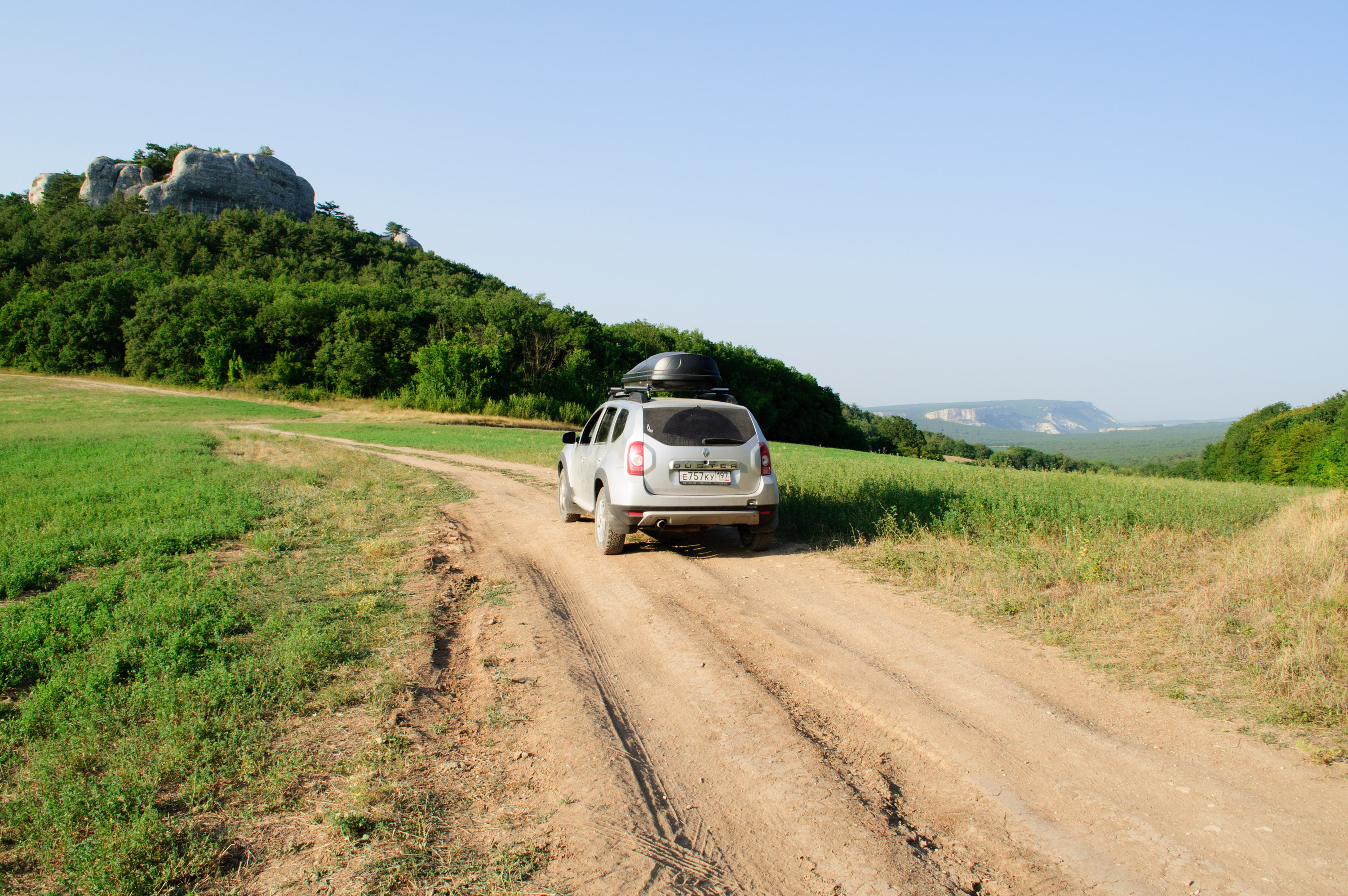 Координаты выезда из леса в сторону пещерного города: 44.607062, 33.768605 Как смог нарисовал. Красным - сложный участок на подъем. Зеленым - лесная дорога, со стороны Терновки, после въезда в лес с поля (начало зеленого участка), первая развилка направо. Левее идет дорога в пещерный город. Но деревья дорогу загораживают. Красный участок преодолел, в режиме АВТО, ЕСП -отключал. Резина зубастая являтеся плюсом. Я знаю что по этой дороге точно еще один дастер поднимался... Дизельный, румынской сборки, с 2 самоблоками в "мостах" и МТ-тапках... Я бы не сказал, что там вообще жесть, но для дастера уже тяжеловато. Плюс разбивают лесовозы. Камни здоровые, все не устойчиво. Зеленая дорога, "автобан" |
