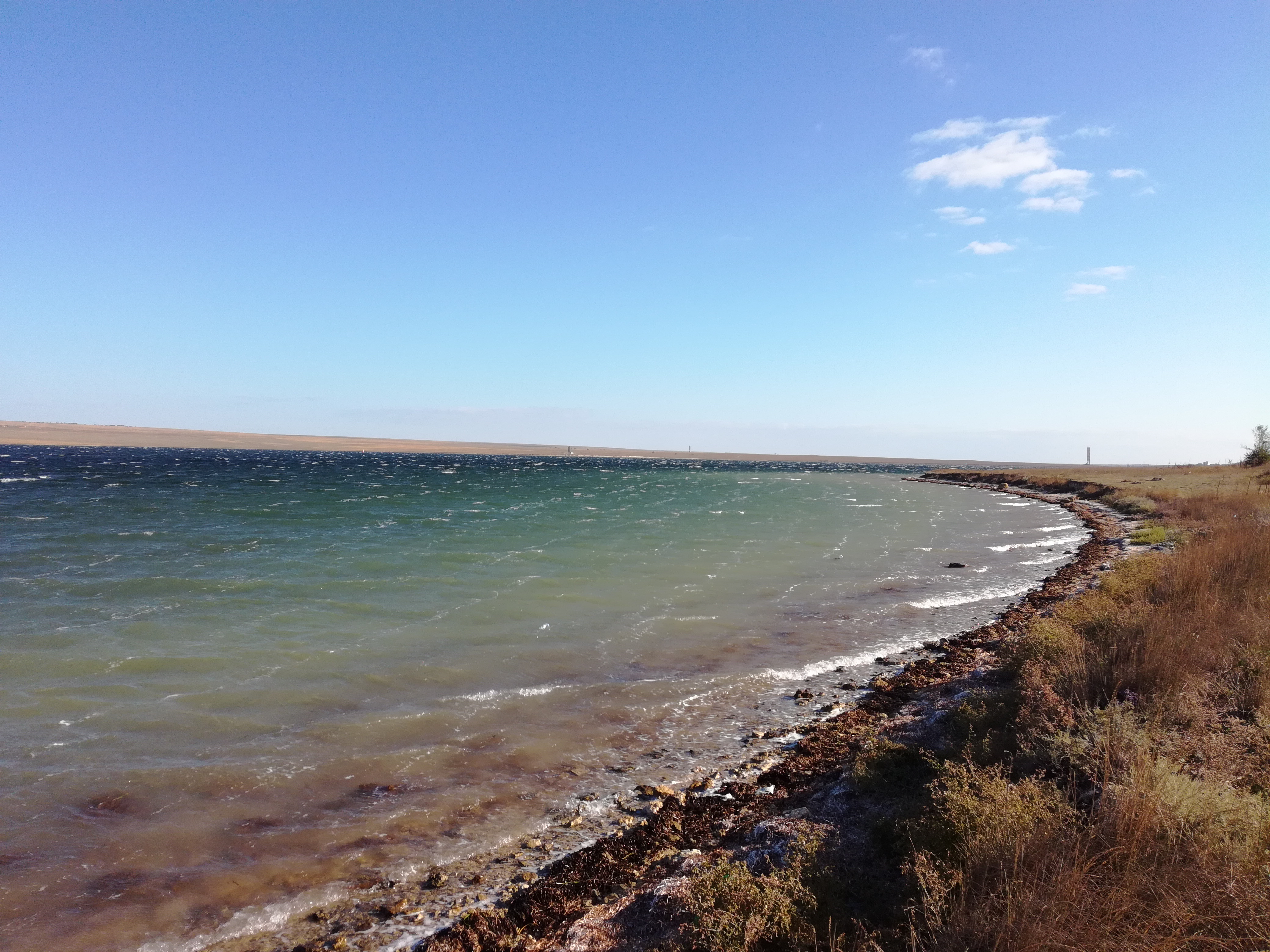 Озеро Донузлав Вода морская. Если бы не сбивающий с ног ветер, мы бы погуляли и покатались там. Места красивые. Но .... погода подвела.