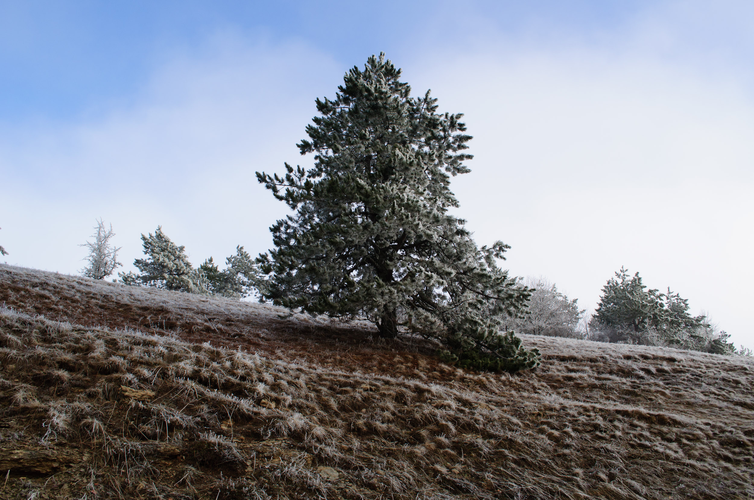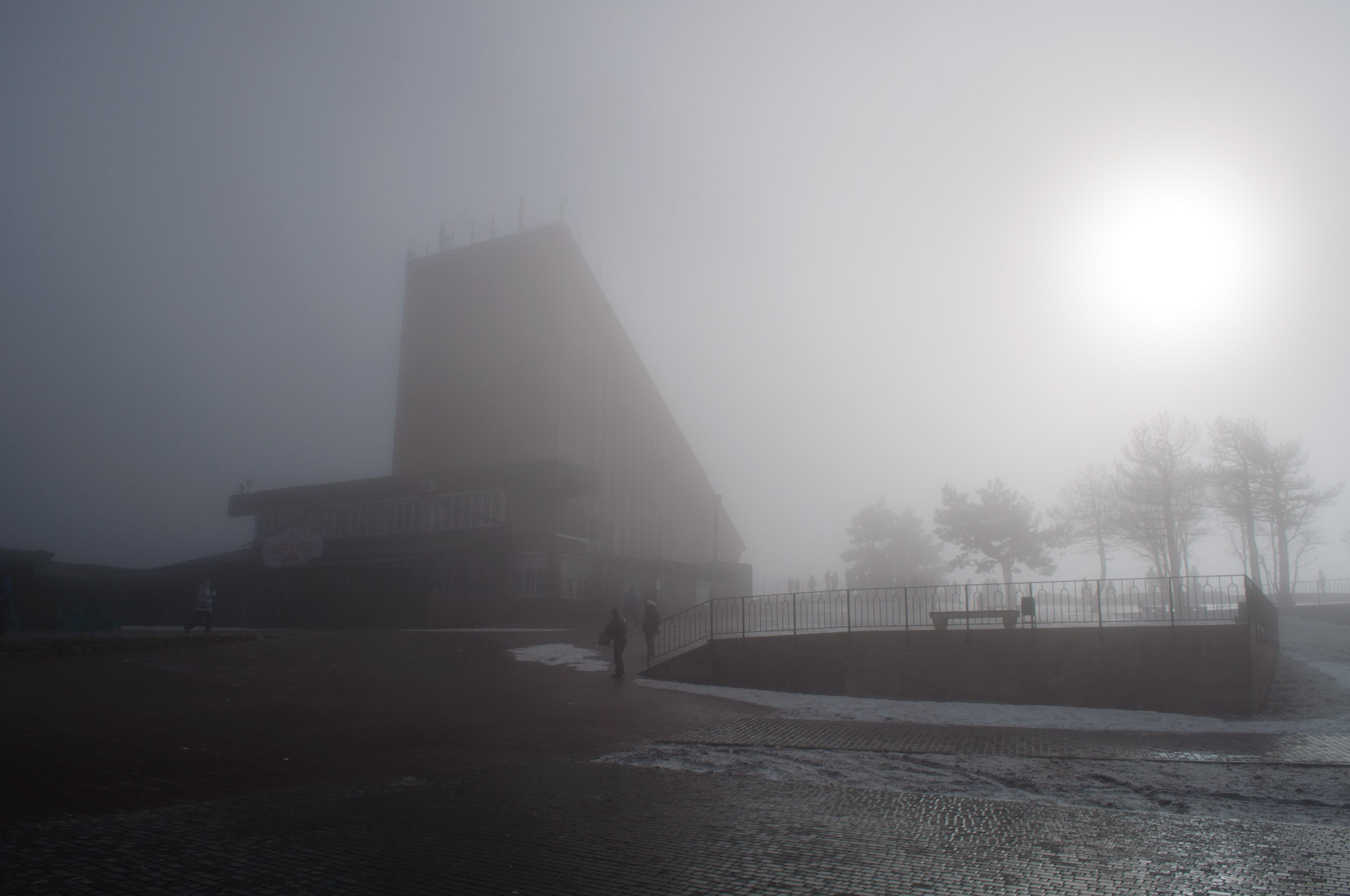 Потом все орут, плато закрыли, никого не пускают! Наверное оно и к лучшему. Погода пока снег не обещает, если выпадет снежок попробую подняться еще раз чтобы увидеть заметные деревья. "Хрусталь деревьев" я уже видел в Крыму многократно=)
