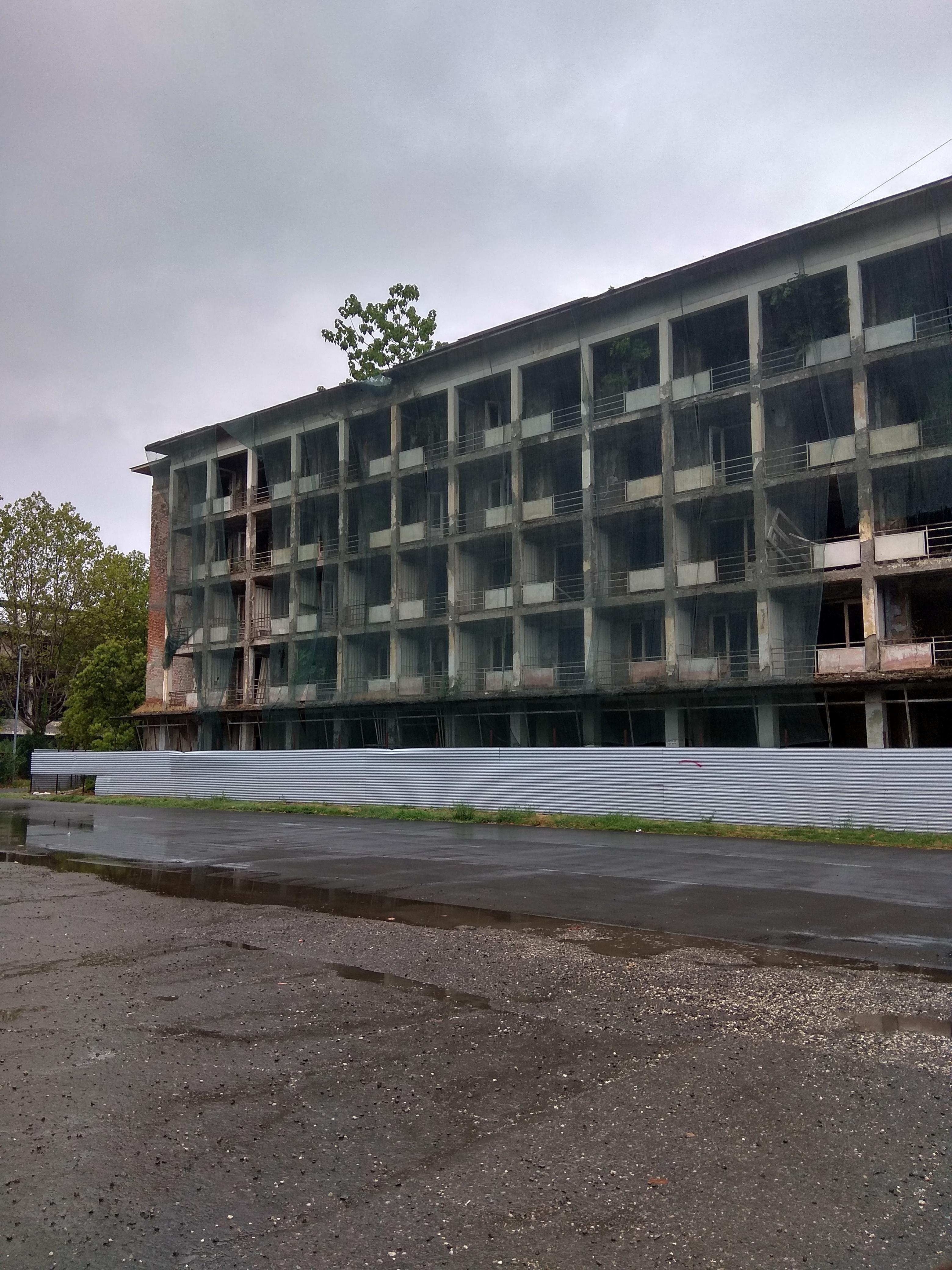 05.07.2018 был тропический ливень, решили поехать Сухум т.к. в номерах сидеть не хотелось. Странный город, совсем не похож на столицу. Много разрушенных зданий, как будто война была вчера.