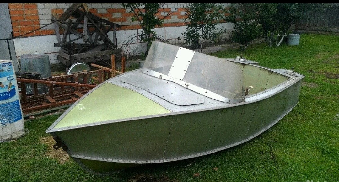 Длина 4 метра, Самодельная из дюралюминия. Рулевое управление, сидения 2 в ряд под 4 чел. Мотор Москва 80. Стоит долго (лет 7 точно) поэтому требуется диагностика. Документов нет. Досталась от деда. Сам не рыбак поэтому жалко технику что не плавает.