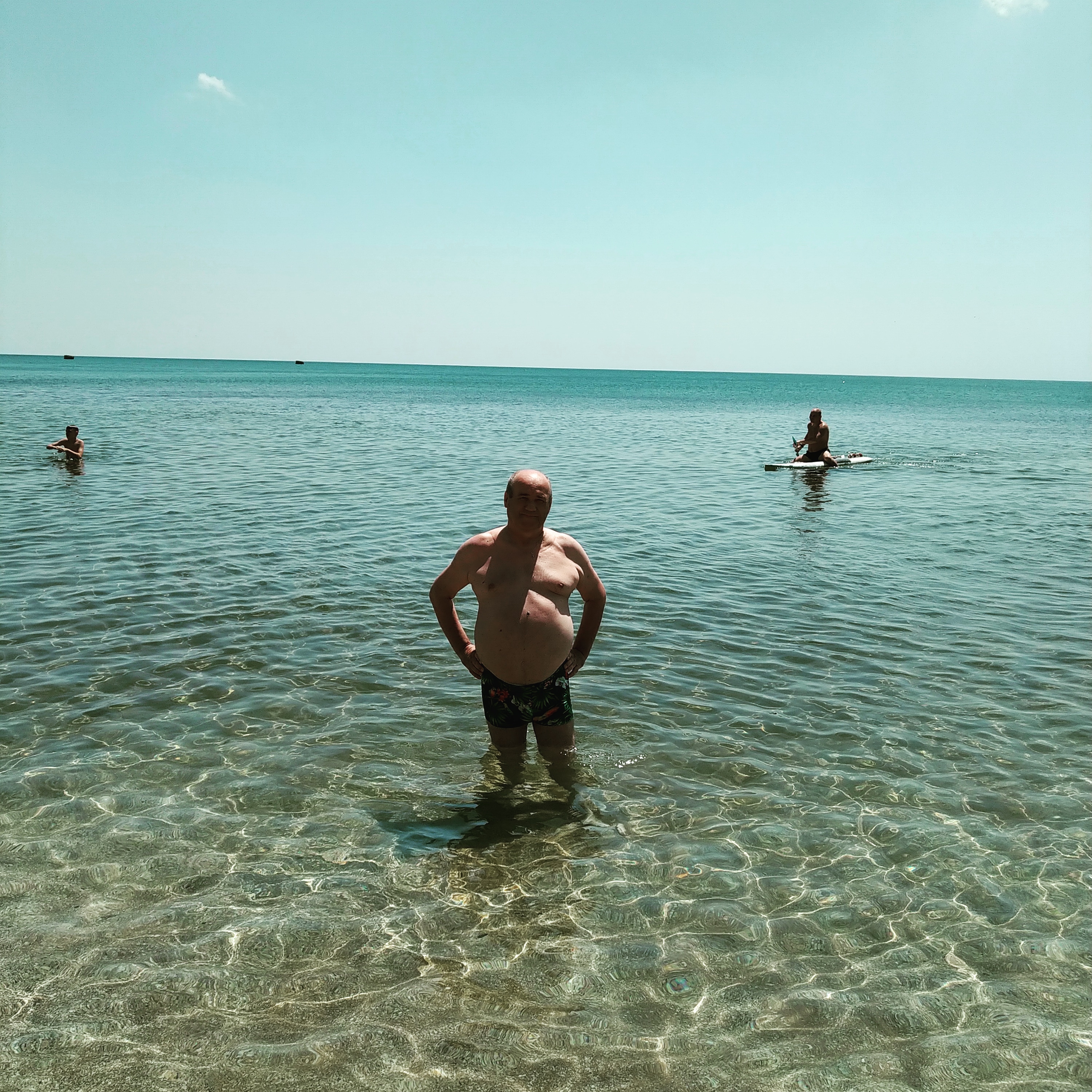 Сейчас пришел с моря,что-то второй день вода "бодрит", наверно где-то +19-20гр. Видимо течение холодное принесло.Хотя на берегу солнце "жарит" нормально +28.Народ в основном загорает, в воде единицы.Сестра в Керчи отдыхает,говорит тоже самое
