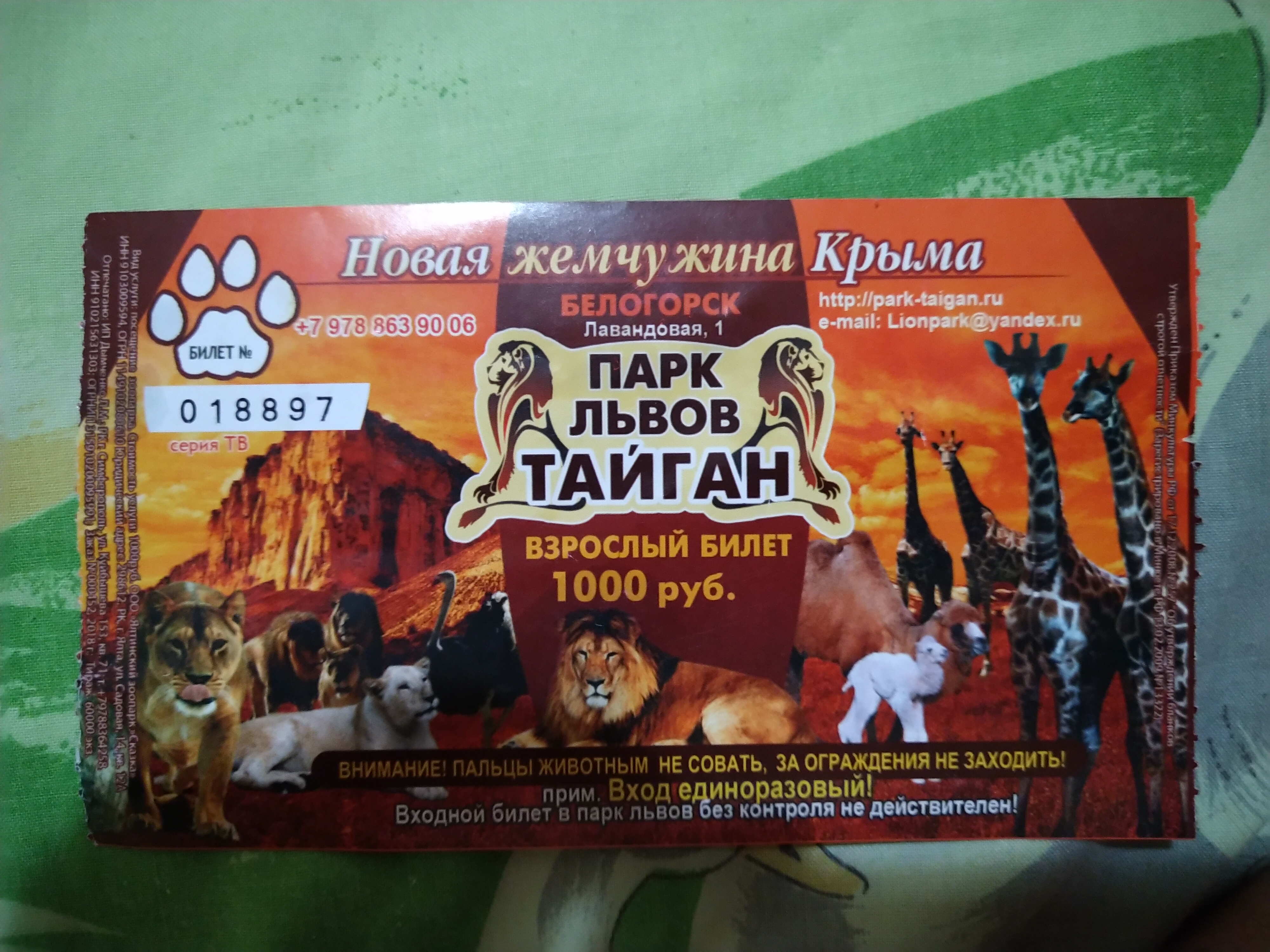 Да Артем, взрослый билет 1000р детский от3до 10лет 500р. Если сделать просто фото с одним львенком или тигренком,то 500р. Мы скооперировались с двумя девушками по 1000р. т.е.всего 2000р и нас пустили в клетку с львятами и тигренком на 15 минут.Хочешь фоткайся, хочешь тискай и гладь.