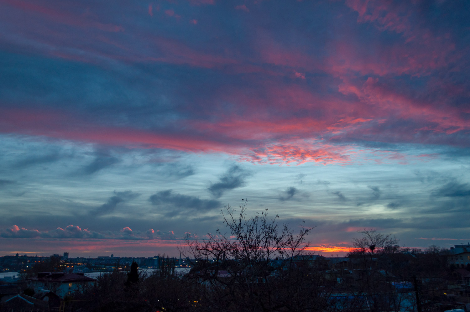 Увидел в понедельник, т.к. выйти на улицу снять нормально - времени не было. Пришлось немного редактировать - убрал провода что мешали наслаждаться небом. |