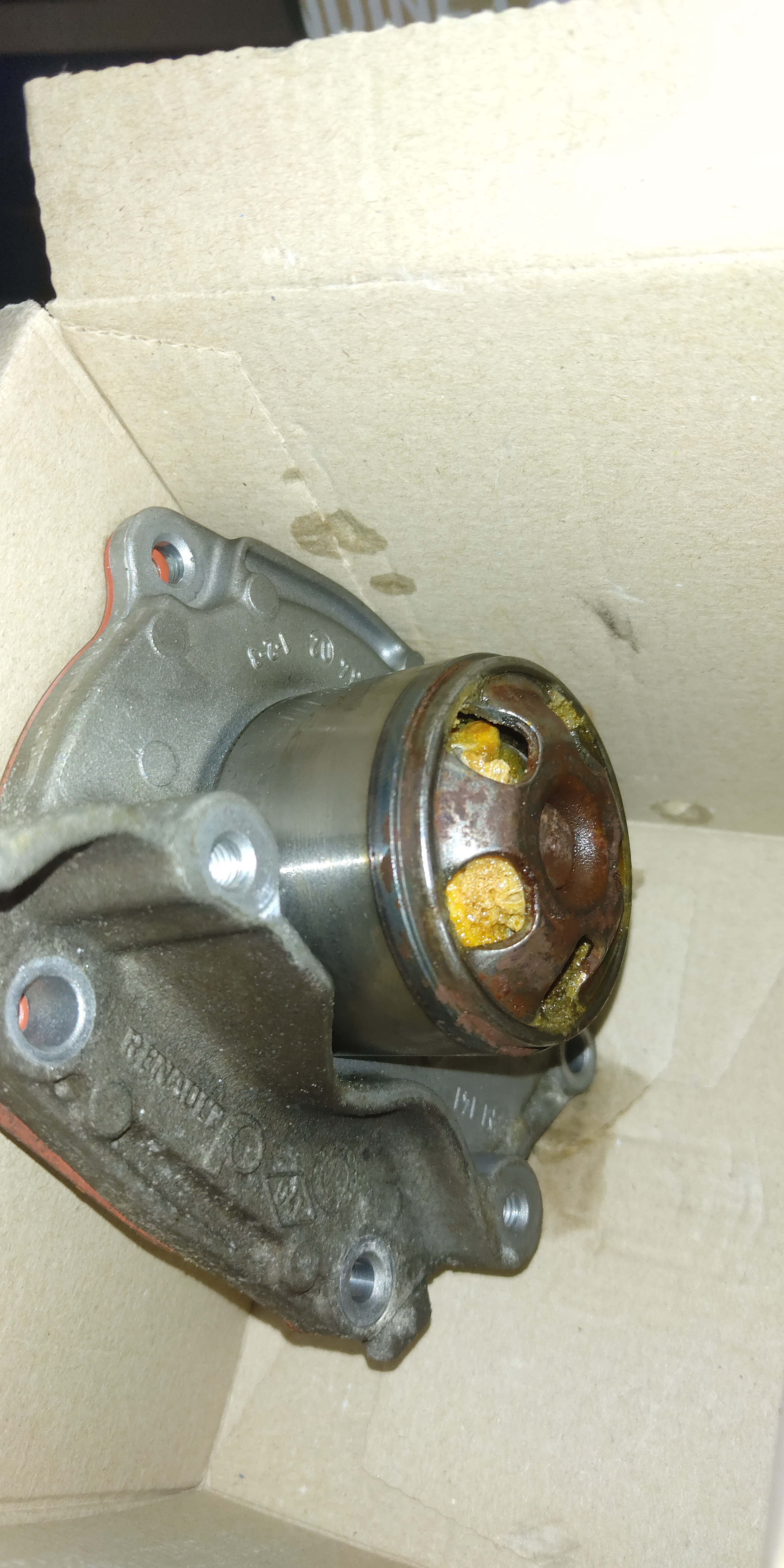 помпу менять не планировал- слесарь настоял, сказал, что не нравится она ему, хотя вроде не течет. в шкиву есть какие то отложения похожие на смазку.