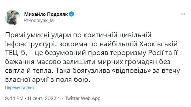 ---------- Сообщение добавлено в 23:41 ---------- Предыдущее сообщение размещено в 23:39 ---------- Карта энергетических систем Украины. ![]() Как вы видите, большая часть энергетической инфраструктуры находятся на юго-востоке. На Украине функционировало четыре атомные электростанции: Запорожская, Ровенская, Хмельницкая и Южно-Украинская (Николаевская область). Всего 15 реакторов, шесть из которых — ВВЭР-1000 — в Энергодаре, обеспечивающем около 40% выработки электроэнергии на АЭС и порядка 20% энергобаланса страны. Энергодар уже давно под контролем ВС РФ. В ночь на 11 сентября последний работавший энергоблок Запорожской АЭС — шестой — отключили от энергосети и начали готовить к переводу в холодное состояние. Сегодня ВС РФ ударили по ключевым ТЭС на северо-востоке и тем самым обесточили несколько Северных и восточных областей Украины. Энергосистема Украины не справилась и отсюда новости, что из-за разбалансировки энергосистемы Южноукраинская и Хмельницкая АЭС отключают от сети блоки. Телеграм канал: @togarma301 Познавательная страничка. На Украине на 2022-й год было 15 ТЭС. Ни одна из них не была построена при Украине. То есть с 1991 года количество построенных на Украине ТЭС - 0. Все действующие ТЭС были построены "проклятыми коммунистами" с 50х по 80-е годы. То есть каждая уничтоженная ТЭС это фактически безвозвратная потеря для Украины, точно также как и НПЗ. Украинские нацисты лишь пользователи чужого труда. ---------- Сообщение добавлено в 23:43 ---------- Предыдущее сообщение размещено в 23:41 ---------- И ещё - Как только начался блэкаут на Украине, сразу резко уменьшилось число комментариев якобы от российских сторонников мира. Также уменьшилось количество мата. ---------- Сообщение добавлено в 23:49 ---------- Предыдущее сообщение размещено в 23:43 ---------- «Тёмная ночь, Лишь калибры летят по степи. Слышен тихий полёт в высоте, Где-то ТЭЦ полыхает…» @vityzeva