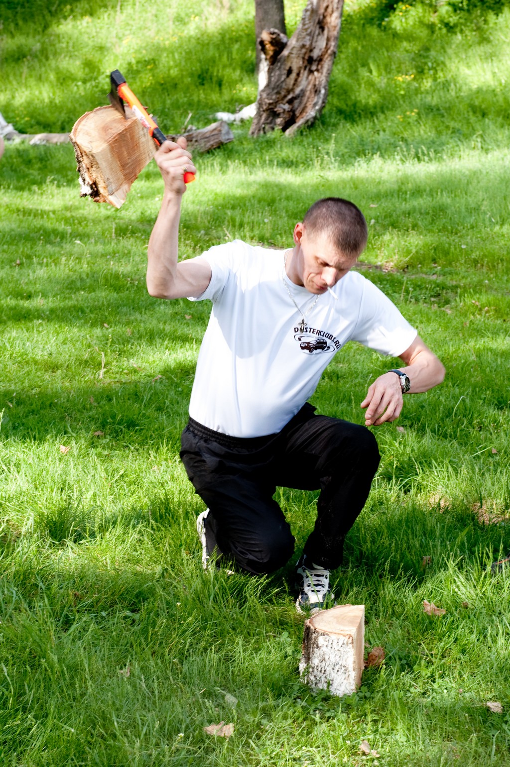 Кому интересно, топор был сломан именно так, как это выглядит на фото. А может просто фотограф не успел)))