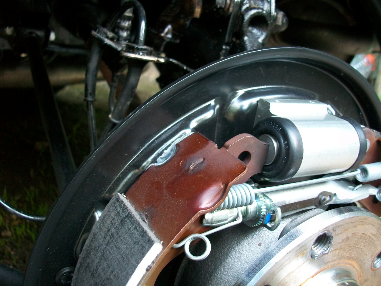 На задних барабанах стоит механизм саморазводки колодок в пространстве барабанов.
