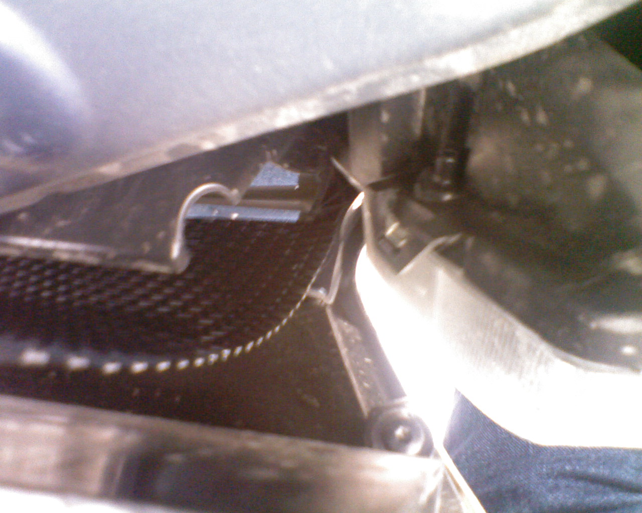 В бампер сетку закрепил хомутиками с внешней стороны, чтобы было проще мыть. А в верхней части к креплению сетки подошел нетрадиционно , т.к. замучился с изготовлением шаблона для нижней части. От заготовки сетки отрезал прямоугольник шириной 770 мм, в средней части вырезал окно, а в верхней подрезал по месту, оставив два уха, которые загнул и закрепил шурупами пластикового кожуха. Дополнительно, для удобства монтажа, сетку одним хомутиков притянул к центральной стойке в имеющееся отверстиеТакой способ, ИМХО, экономит время на подгонку сетки и нет необходимости разбирать решетку с обратной стороны, кроме этого, так проще мыть решетку радиатора, т.к. сетка не прилегает в решетке изнутри Да, расходы, 2х250 р. за сетку плюс часа 4 времени, долго возился с изготовлением шаблона