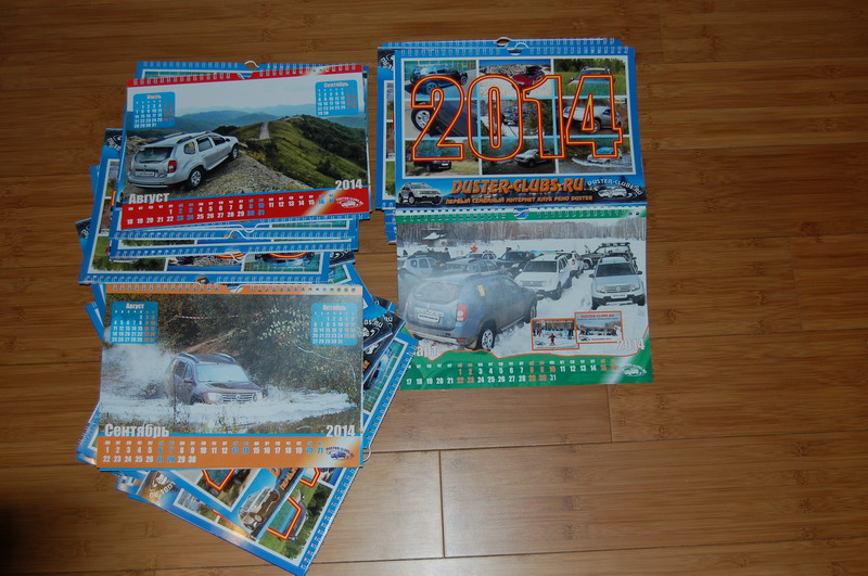 У нас есть прекрасная новость - изготовлены клубные календари на 2014г! Форматы: Перекидной календарь А3 (297х420мм) и А4 (210х297) Обложка + 12 месяцев Варианты исполнения: №1 - с миниатюрами в виде фотографий №2 - с миниатюрами в виде предыдущего и след.месяца (см. фото) Цены: А4 - 200р А3 - 400р. Акция - http://duster-clubs.ru/forum/showthr...835#post186835 Алгоритм получения календаря при личной встрече Цитата: