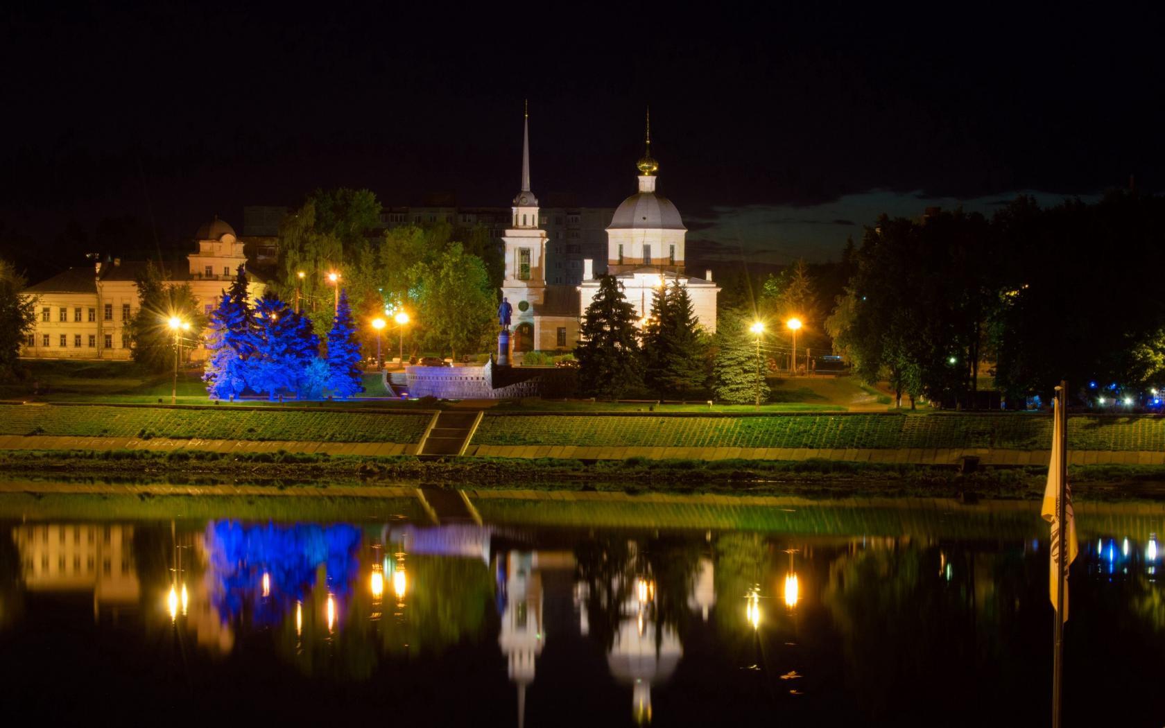 Тверь. Воскресенская церковь (1731 г.) и памятник Афанасию Никитину на набережной его имени (бывшей Первомайской). |