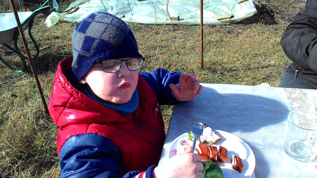 Первый выход на грядки, посадили редиску в теплице, пожгли старую траву, вырезали старую малину, ну и первый пикник