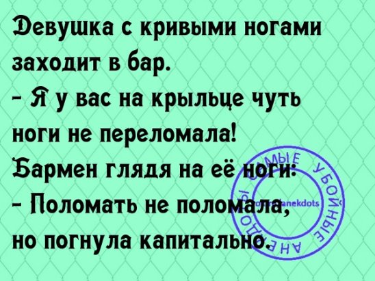 — Исполню любые 3 желания. — Ну, давай по рюмочке. Посидели, выпили, через час мужик опять трет лампу, заказывает по рюмочке. Посидели, выпили. Через час опять трет лампу. Джинн: — У тебя осталось последнее желание. — Давай еще по рюмочке — Это же последнее желание! Загадай что- нибудь получше! Например, мир во всем мире. — Неее, давай по рюмочке Посидели, выпили. Через час Джинн вылазит из лампы и говорит: — Ладно, загадывай четвертое |