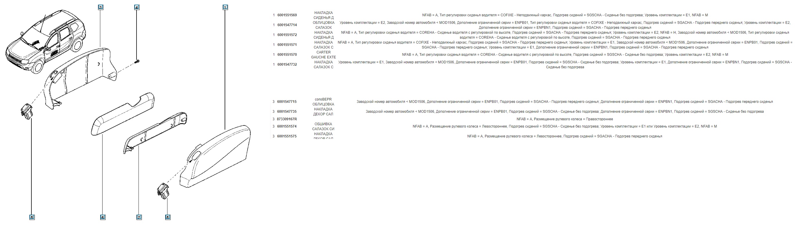 4. Ф1, Ф2 - деталь для Дастера, соответственно, только Фазы-1 или Фазы-2. Ф1/2 - подходит и на Ф1 и на Ф2. Отсутствие пометки - подходит на Ф1, совместимость с Ф2 неизвестна