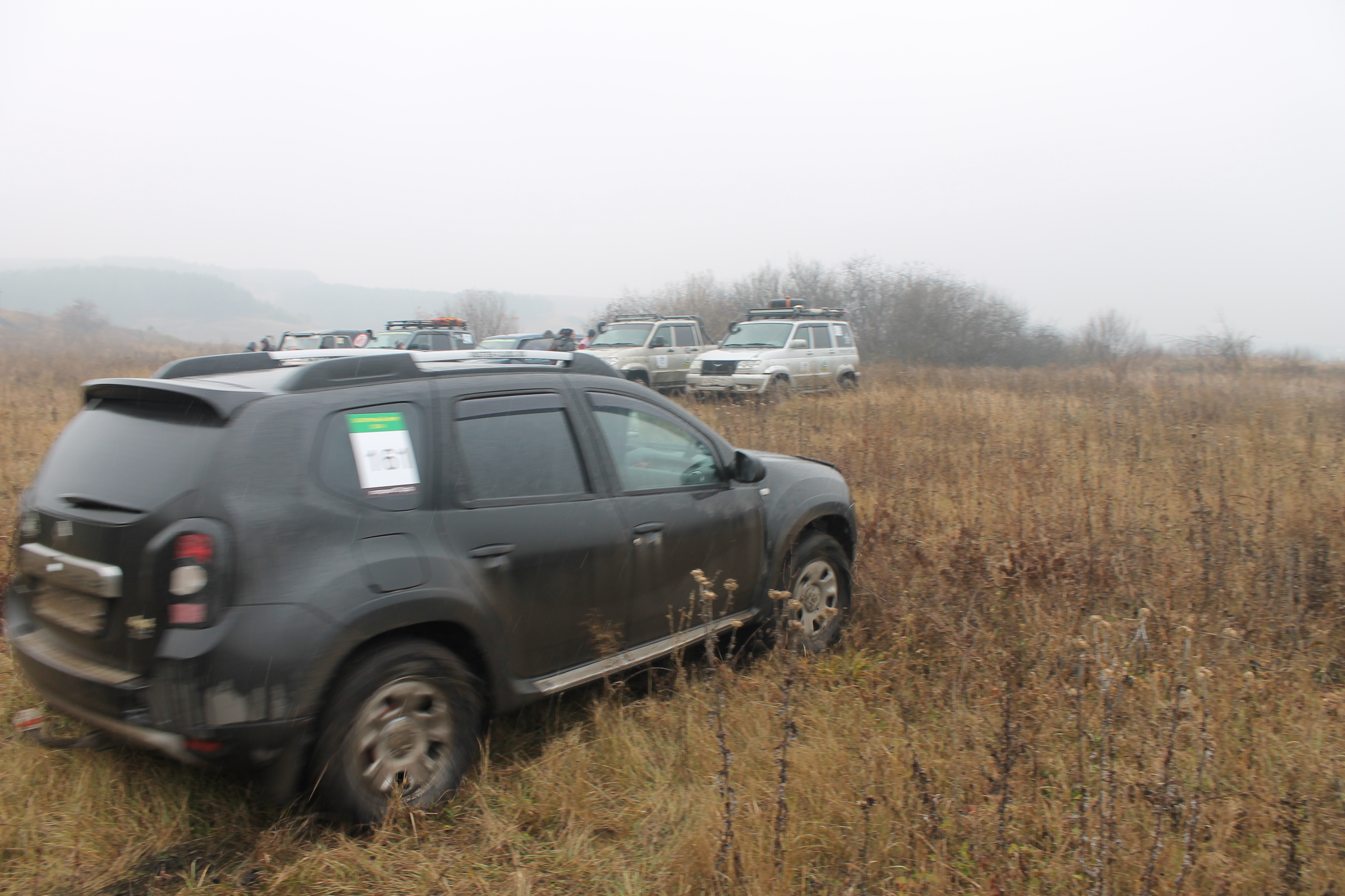 По поводу технического оснащения участвующих экипажей писать не буду, видели все по фото... Получили регистрационные номера и они заняли свое место Пока проходил БРИФИНГ (на брифинге присутствовал Сергей SERЖ - штурман) я накинул цепи на 4 колеса, немного порысачил и подтянул их... Все к бою готов Дабы не накалять обстановку старта и избежать одновременного кучкования автомобилей, ОРГи организовали игру: Выдается участнику одна часть артефакта, а вторая находится на соседнем холме на дереве, нужно найти свою вторую часть артефакта (аналогичную табличку с идентичным номером) прийти на место старта и в обмен на артефакт получить дорожную книгу с заданием... Тем временем Сергей получил одну часть артефакта (как и все остальные участники) и направился за второй Ссылка на карту http://maps.yandex.ru/-/CVv8A025 красные метки - точки первого этапа (обведено красным - область проведения)