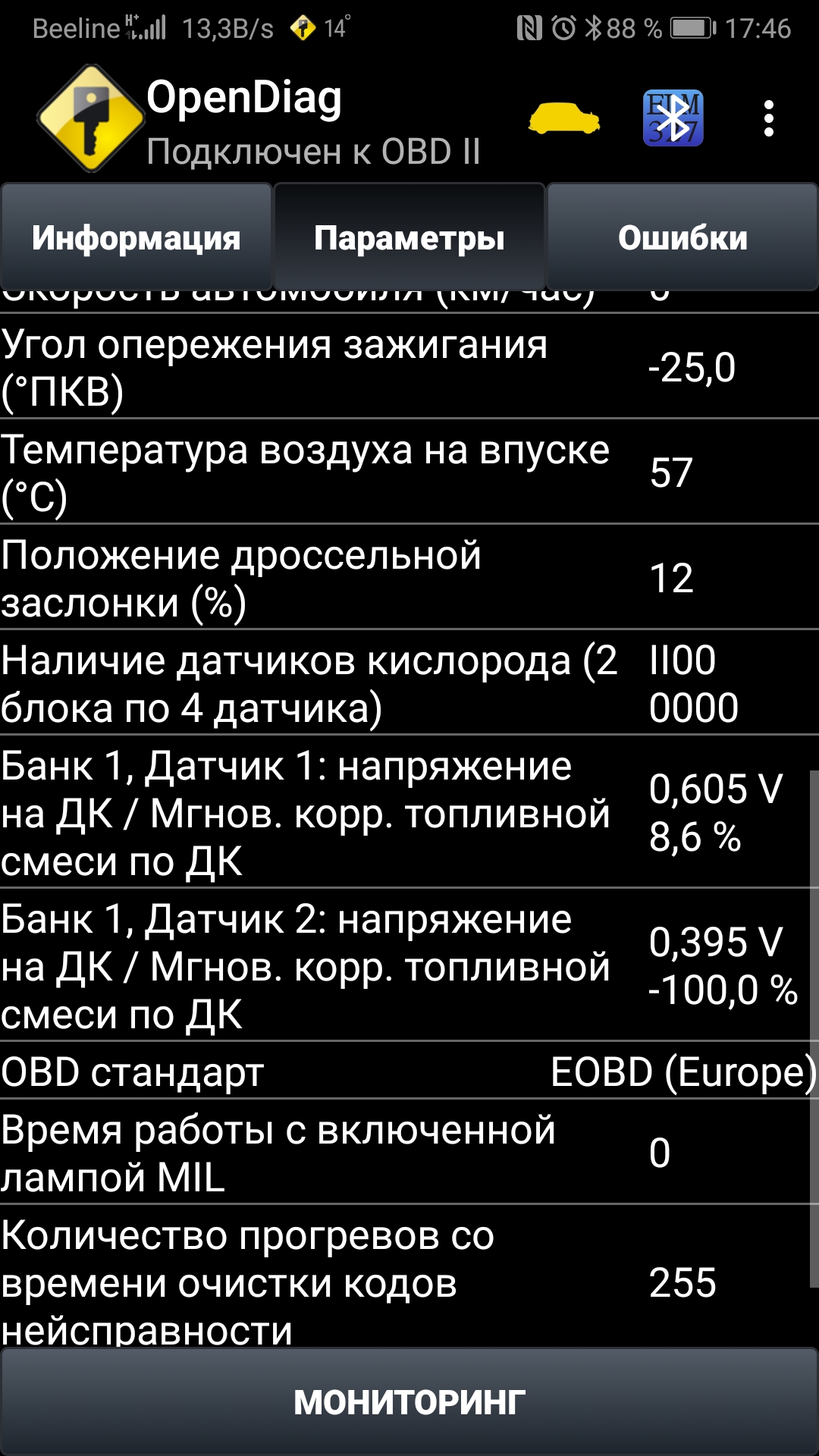 На стоянке сейчас подключился, смущает что долговременная коррекция в минус, кратковременная в плюс...