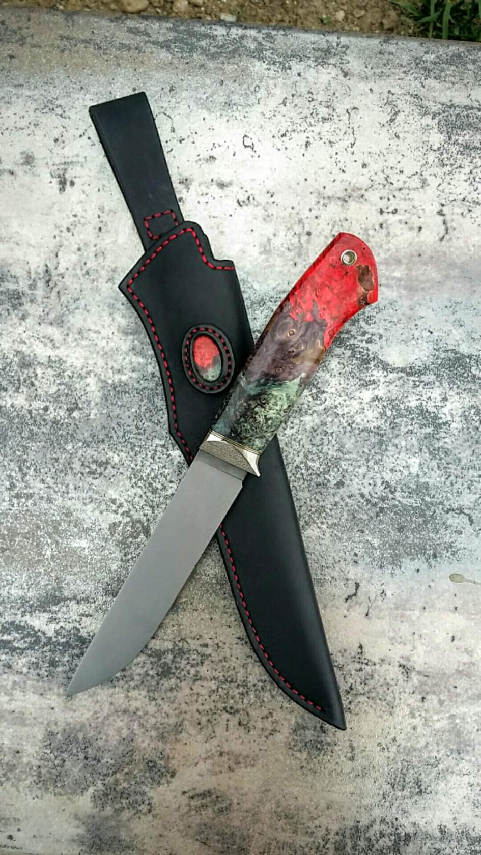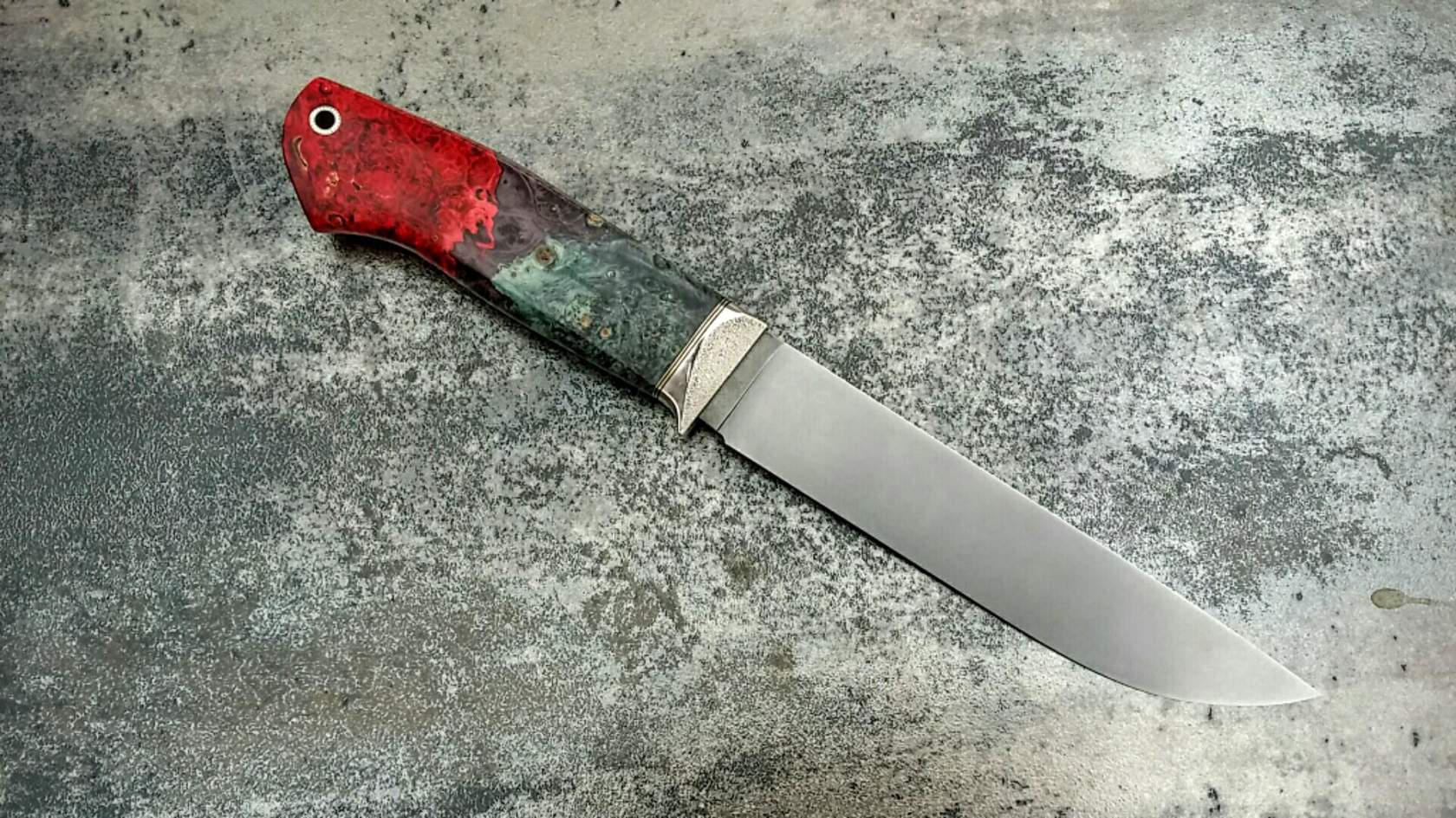 Клинок — легированный булат, длина 145мм., ширина 31мм., толщина 2мм.; рукоять: гарды — латунь, дерево — палисандр , длина 128мм. Очень мало пользовался. 10 000 руб. Простите за перевернутое фото ... не могу вставить по другому (2. Нож Сергея Козлова Клинок Элмакс,термичка Томаса (ака Giko Литва ) 62HRC. ТТХ 150*27*3.9мм. Рукоять 125мм. стаб.кап клена (работа Сергея Усикова) Мельхиор,фибра , латунь, темлячная мазаичная трубка. Ножны кожа КРС 13 000 рублей |